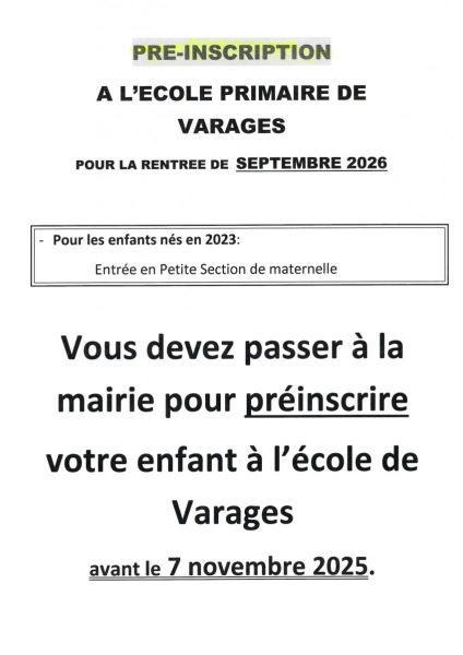 Votre enfant est né en 2023, vous devez venir retirer le formulaire de pré-inscription pour la rentrée 2026 à l'accueil de la mairie