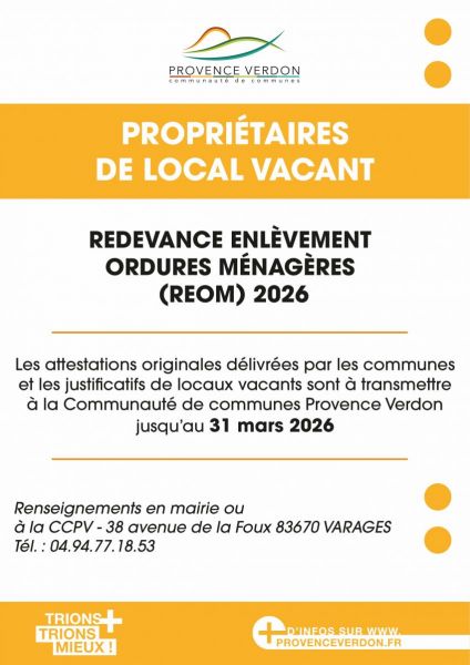 Propriétaires de local vacant : redevance enlèvement ordures ménagères 2026