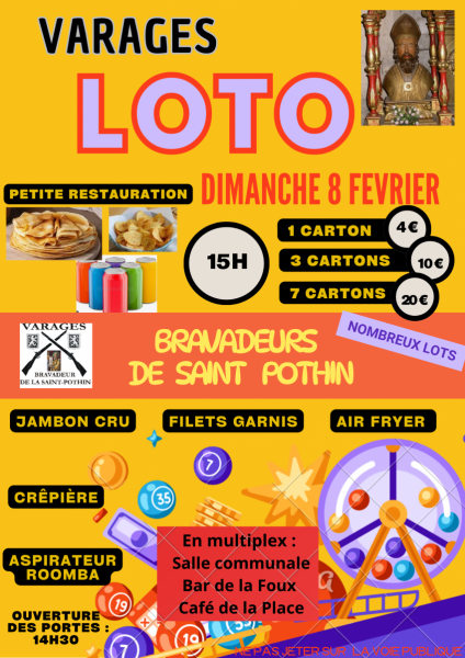 Grand loto annuel de l'association. Rendez-vous à 15h à la salle communale.